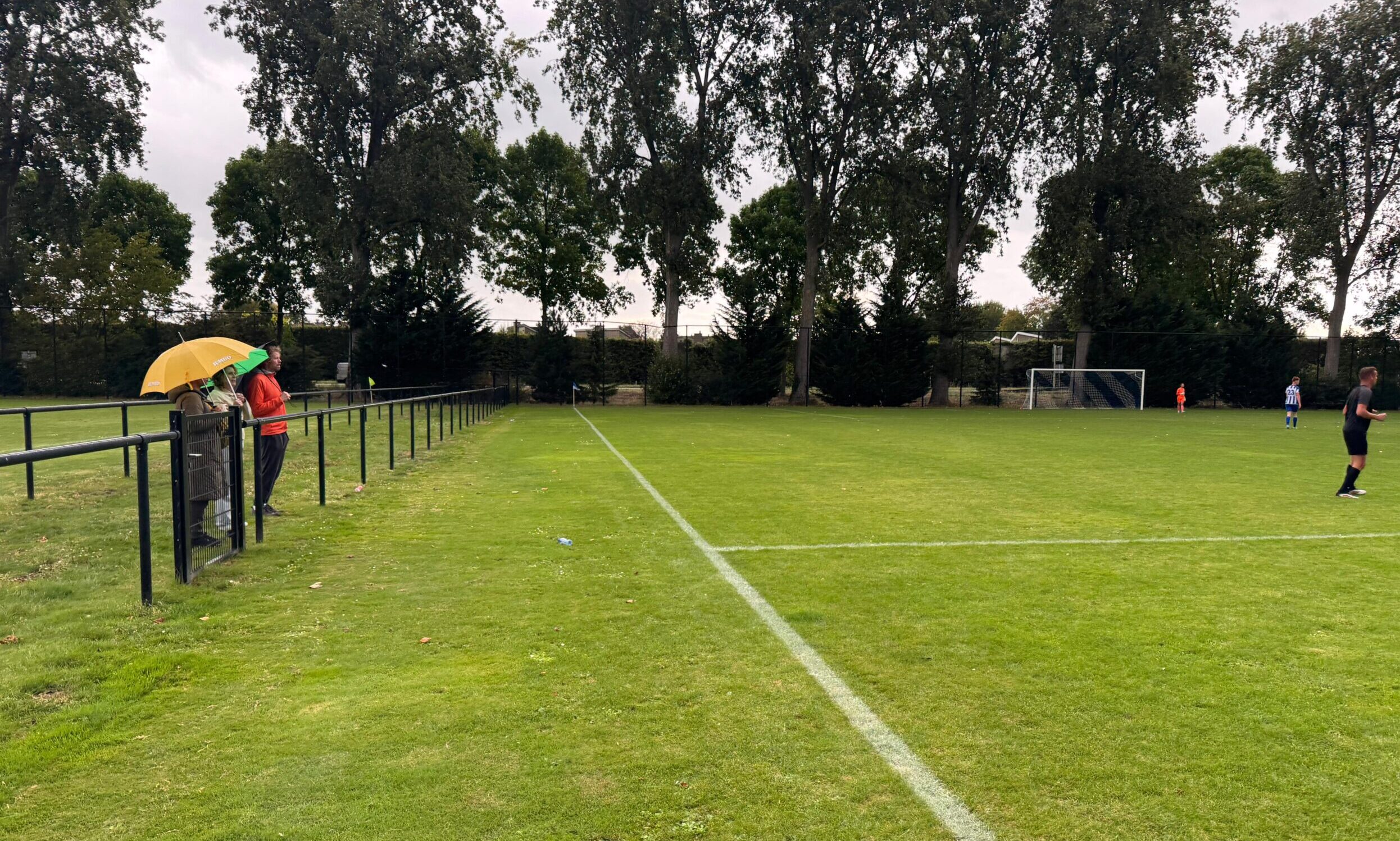 De wind begon aan te zwellen en de weer app van La Frob voorspelde niet veel goeds. De ploegen zouden het hoe dan ook niet droog houden. De familie Van Duivenbode had de weersverwachtingen ook gelezen en zocht daarom na goedkeuring van overige supporters onderdak in de dug-out. Pieter van der Tholen daarentegen verwachtte er niet veel van. “Ah joh, waait wel over”, klonken de later zwaar bestrafte woorden.
